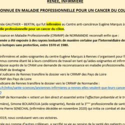 Victoire! Renée, infirmière, reconnue en maladie professionnelle pour un cancer du colon