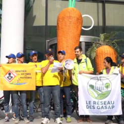 Nous sommes paysannes et paysans, victimes des pesticides, parents de victimes, riverains d’épandages de pesticides et de captages d’eau intoxiqués, scientifiques et soutiens. Nous sommes plus de 500 à nous rassembler le 17 novembre pour mettre à l’arrêt le site BASF de Saint-Aubin-lès-Elbeuf. Ce lieu incarne les dérives et l’impunité persistantes de l’industrie criminelle des […]