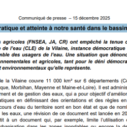 Certains syndicats agricoles (FNSEA, JA, CR) ont empêché la tenue de la réunion de la commission locale de l’eau (CLE) de la Vilaine, instance démocratique qui réunit des élus mais aussi l’ensemble des usagers de l’eau. Une situation que dénoncent nos structures citoyennes, environnementales et agricoles, tant pour le déni démocratique que pour les reculs […]