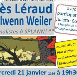 Table ronde avec Inès Leraud et Nolwenn Weiler , journalistes à SPLANN avec la participation de Juliette Coutand, chargée de mission Bocage-environnement Pour réserver , cliquer ici